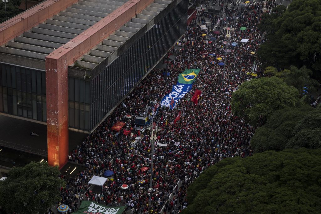 Em São Paulo, o Fórum das Centrais Sindicais, a Frente Brasil Popular, a Frente Povo Sem Medo, a Coalizão Negra por Direitos e a Convergência Negra organizaram uma manifestação no vão livre do Masp, na Avenida Paulista (foto), em andamento desde as 18h.