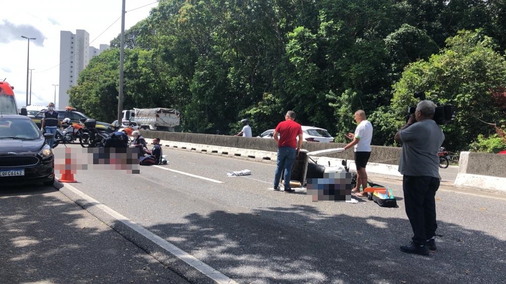 Um motociclista teve as duas pernas decepadas após ser atropelado por um carro e depois por uma carreta na manhã desta quarta-feira (11) na BR-230, em João Pessoa.