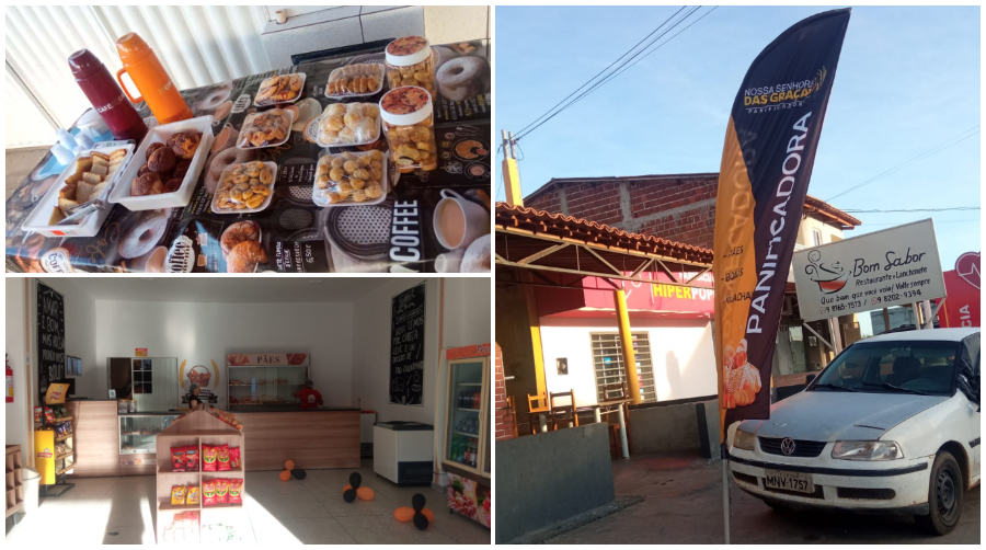A Panificadora Nossa Senhora das Graças, que é tradição há dez anos na produção de pães, bolos, bolachas, café da manhã e lanches da tarde, mudou para a Rua Manoel Monteiro, principal da BR, no centro da cidade, um ambiente aconchegante, amplo para receber melhor seus clientes para saborear os mais variados produtos e saborear um delicioso café. É aberta de domingo a domingo, das 5h30min às 19h.