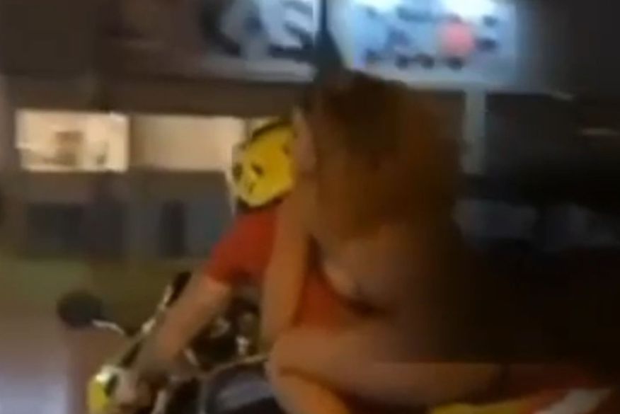 Uma mulher foi flagrada em uma cena bastante inusitada na BR-230, no trecho próximo a passarela do bairro Renascer, limite dos municípios de João Pessoa e Cabedelo. Ela aparece completamente nua na garupa de uma moto. Conforme apurou o ClickPB, o vídeo tem sido bastante compartilhado nas redes sociais desde o início da madrugada de hoje (08).