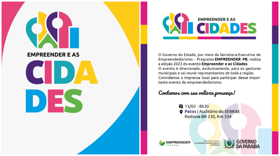O Governo da Paraíba, através da Secretaria Executiva de Empreendedorismo Empreender PB realiza a edição 2023 do evento “Empreender e as Cidades” que tem como objetivo promover a aproximação com os gestores municipais, através de uma troca mútua de conhecimento, com o propósito de consolidar ainda mais o empreendedorismo no estado da Paraíba.