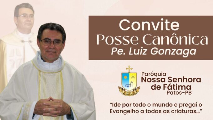 A Paróquia de Nossa Senhora de Fátima, em Patos, convida seus paroquianos, bem como as comunidades e fiéis de toda a cidade para a celebração eucarística de posse canônica do padre Luiz Gonzaga Pereira como administrador paroquial na referida paróquia.