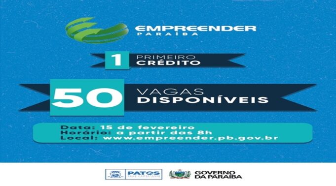 O Programa Empreender PB abrirá nesta quarta-feira, 15, a partir das 8h as inscrições para concessão de linha de crédito na cidade de Patos. Os candidatos podem se cadastrar, por meio do site www.empreender.pb.gov.br até enquanto durarem as vagas.