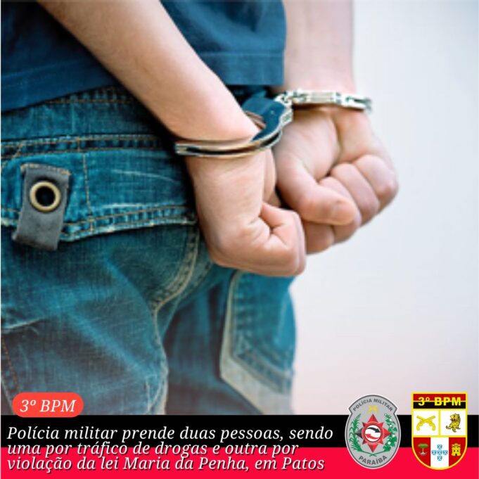No início da tarde desta terça-feira, 14/02, a Polícia Militar prendeu duas pessoas por suspeita de tráfico de drogas e violação de medida protetiva por conta de violência doméstica, em Patos. As prisões ocorreram em cumprimento a mandados de prisões expedidos pela 2ª Vara Mista de Patos.
