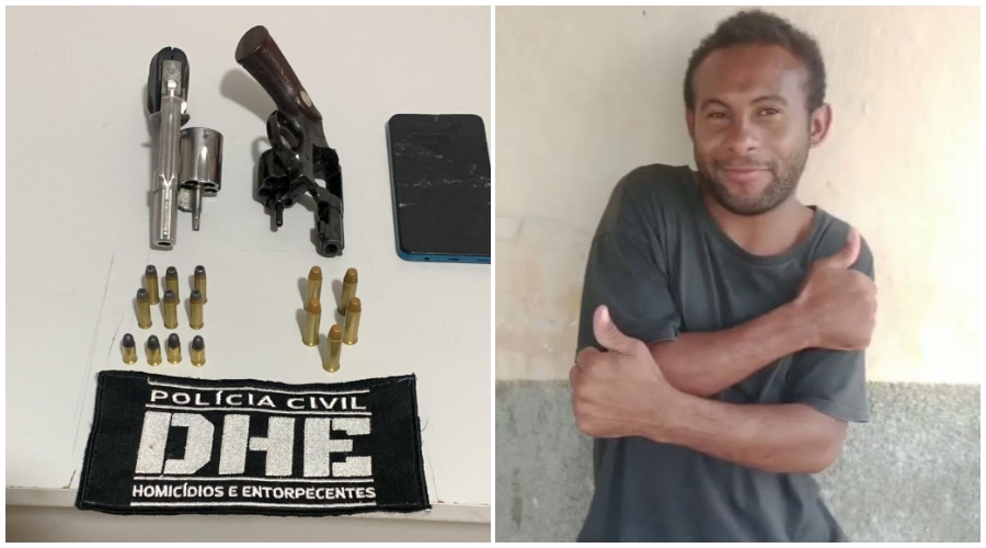 Segundo informações do delegado Afrânio Brito, da Delegacia de Homicídios e Entorpecentes (DHE), o suspeito foi preso com dois revólveres calibre 38, um deles usado no cometimento do crime.