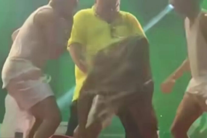 Na ocasião, Ângelo Filho fez uma coreografia com a dançarina da banda, gerando imagens ousadas, que tem viralizado nas redes sociais.