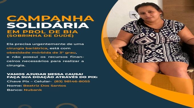 A cirurgia bariátrica é sua única chance de recuperar sua saúde e ter uma vida normal novamente. É por isso estamos pedindo ajuda. Qualquer valor doado será muito apreciado e poderá fazer toda a diferença na vida de Bia. O valor da cirurgia é em torno de R$ 20 mil com as despesas dos hospitais.
