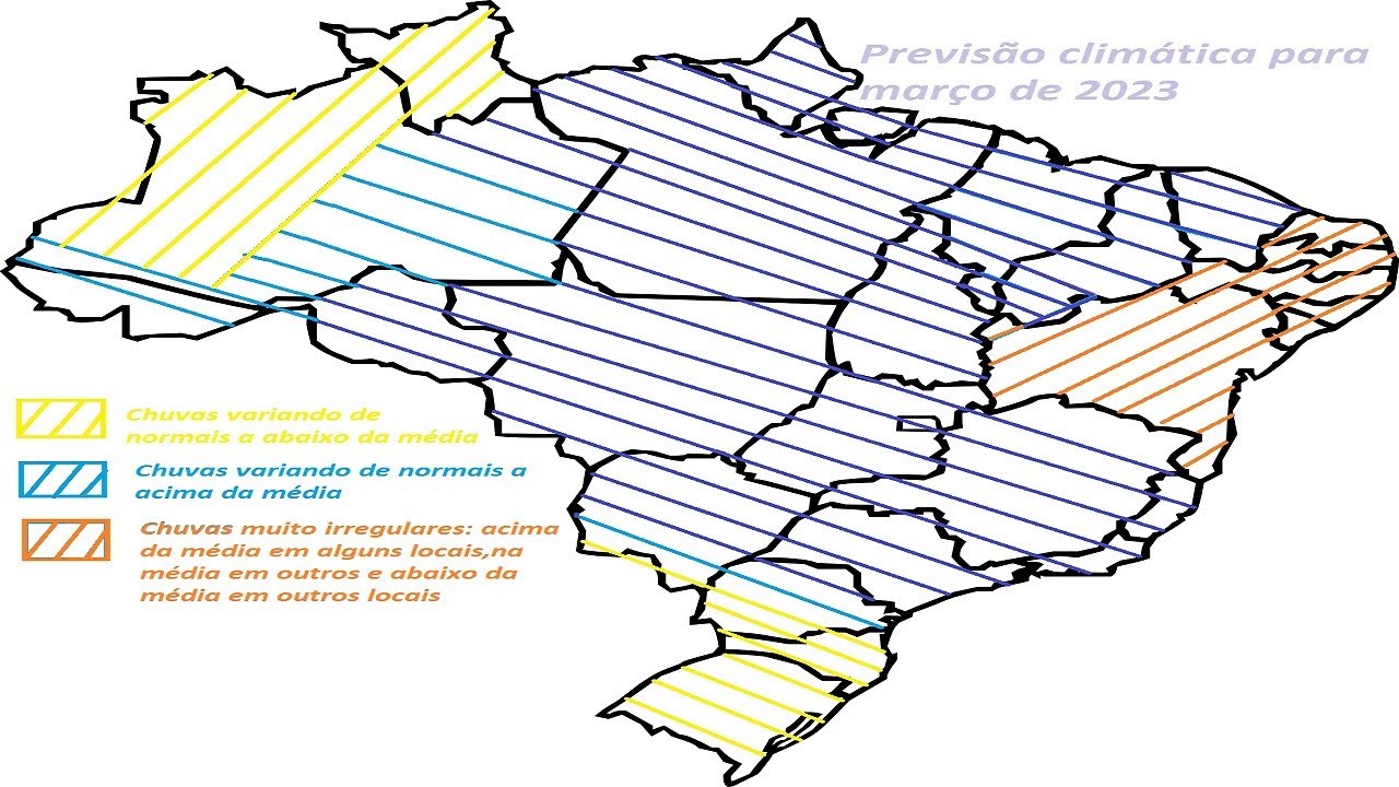 Região Norte: chuvas variando de normais a acima da média no Amapá, Pará, leste da Amazônia, Rondônia e Acre, agora no oeste da Amazônia e em Roraima, as chuvas deverão variar entre a média e valores abaixo da média;