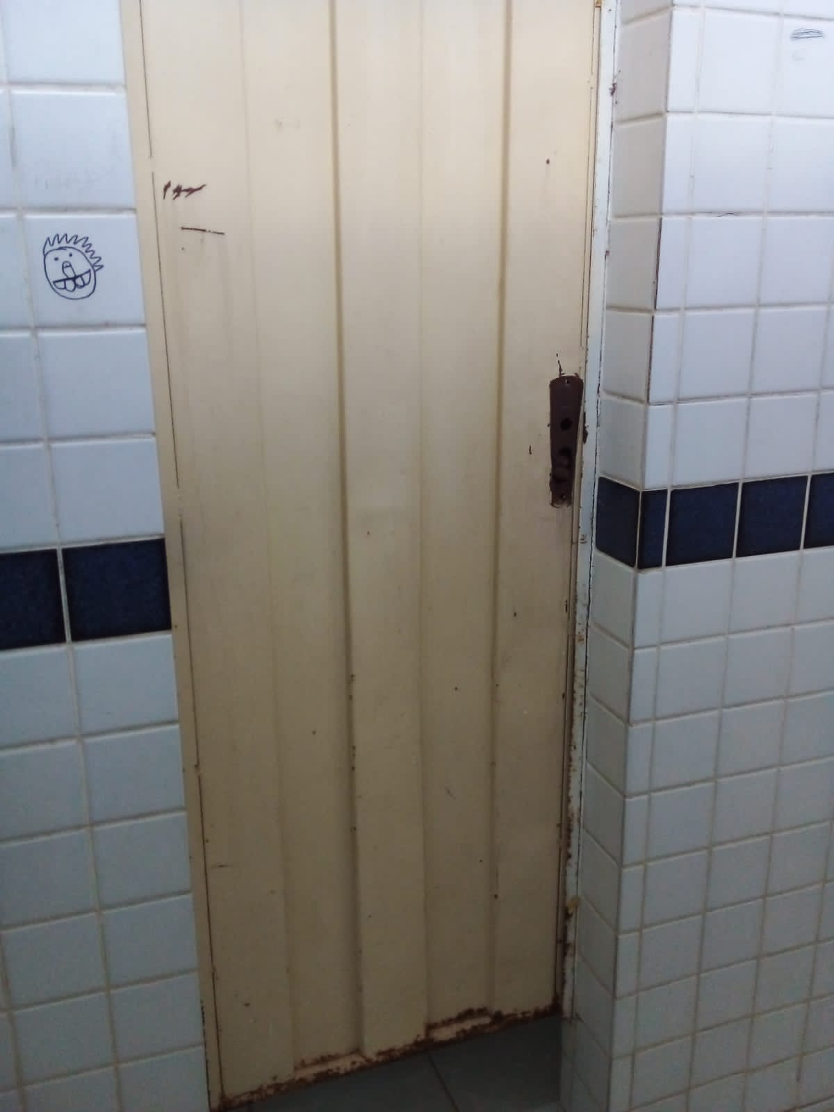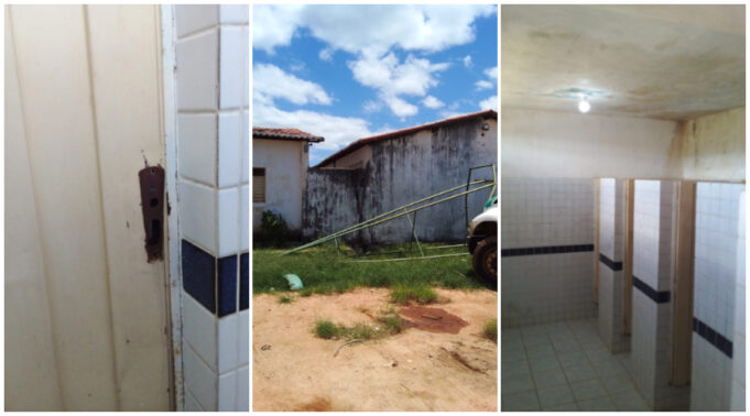 Os estudantes denunciam que as portas dos banheiros não foram trocadas, não têm descargas, falta reservatório de água, o que impossibilita de tomarem banho.