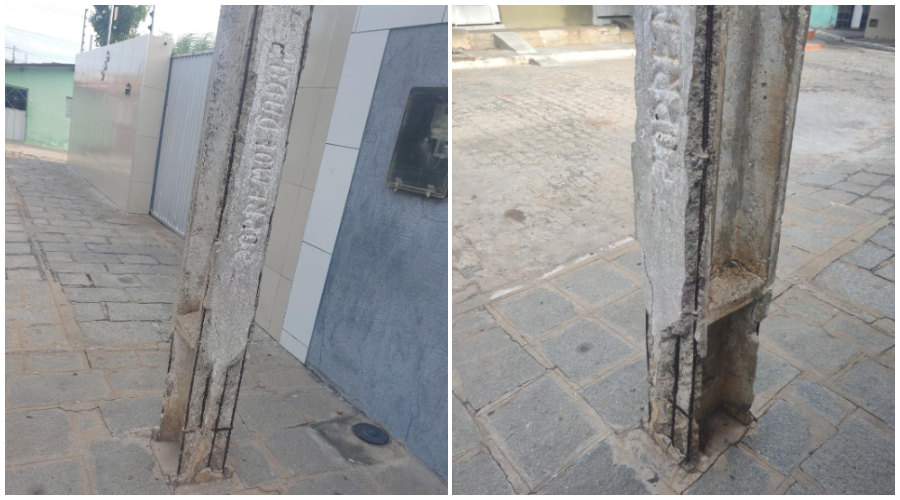 Moradores da Rua Félix Araújo, no bairro São Sebastião, em Patos, estão preocupados com a situação de um poste de iluminação pública que está com a sua base estrutural comprometida.
