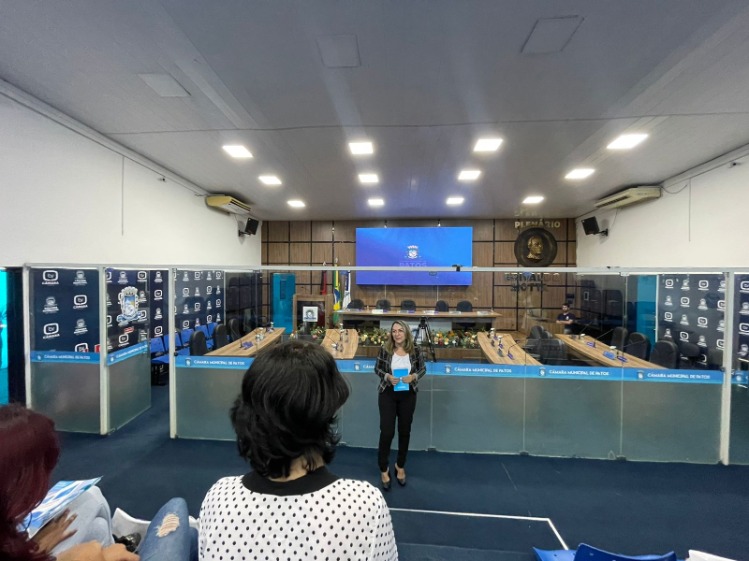 A Câmara Municipal de Patos recebeu na manhã desta segunda-feira, dia 20, cerca de 50 alunos dos cursos Técnicos de Design de Calçados e de Vendas da EECIT – Escola Estadual Cidadã Integral Técnica de Patos, Lynaldo Cavalcanti de Albuquerque, localizada na Zona Sul da cidade. A presidente da casa, vereadora Tide Eduardo (União) foi a anfitriã dos jovens, com idades entre 14 e 16 anos, que integram o Projeto Escolar denominado de Constituição em Ação. “Fiquei muito lisonjeada em poder contribuir com esse importante projeto escolar desenvolvido pela escola técnica através da professora Maria da Penha. ”, avaliou a gestora da casa Juvenal Lúcio de Sousa. “Além de apresentar as nossas dependências físicas, a exemplo dos gabinetes dos parlamentares e as salas onde os servidores desenvolvem suas funções, nós tivemos a oportunidades de reuni-los no auditório para uma conversa, oportunidade que tive de explicar como funciona o trabalho do Poder Legislativo Municipal. ”, relatou Tide Eduardo, que após rápida palestra, ofereceu aos alunos cópias do Regimento Interno da Casa e da Lei Orgânica do município.