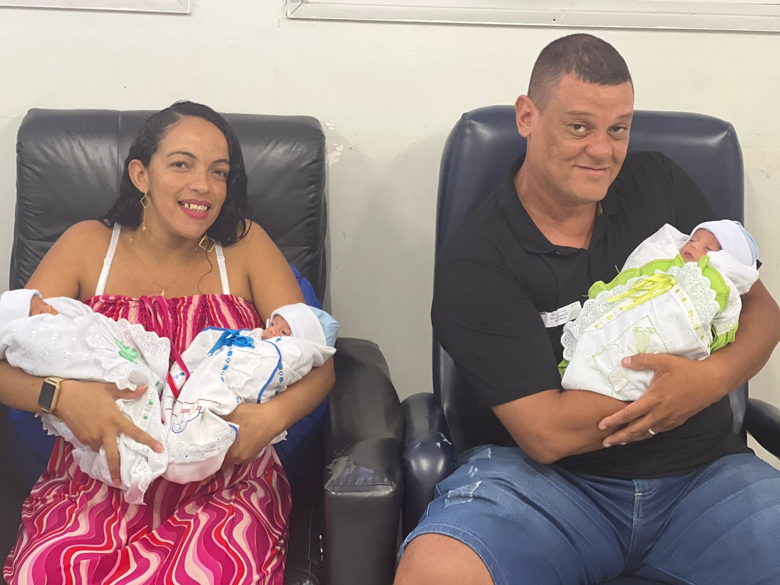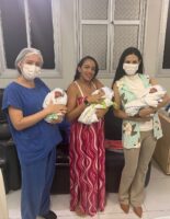 “Um ficou na UTIN, os dois outros ficaram na UCIN e a equipe cuidou muito bem deles. Ainda mais quando eu fiquei com uma sonda, sem poder cuidar deles. Vocês foram uma verdadeira mãe para eles. Foi muito difícil, mas pedi forças a Deus para poder vê-los e agora estou com eles nos braços agradecendo a Deus”, falou a paciente em depoimento à equipe.