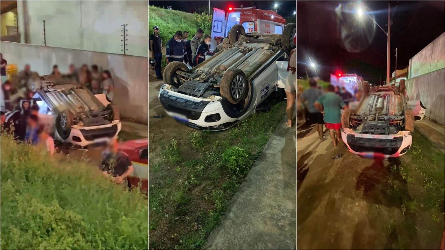 O carro, modelo FIAT/MOBI LIKE de cor branca, pertencente a empresa GC Mix, desceu o barranco e capotou em uma rua que fica ao lado da rodovia, muito próximo do muro de uma residência.