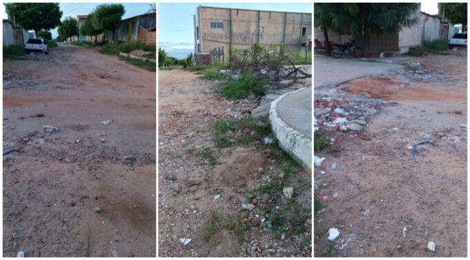 “Todas as ruas próximas já foram calçadas e essa está há mais de 6 meses sem serviços, interditada e com vários acidentes por conta dos buracos e acúmulo de areia. Eles não completaram o serviço da Rua Manoel Reinaldo, aí a rua está com o final interditado”, relataram os moradores.