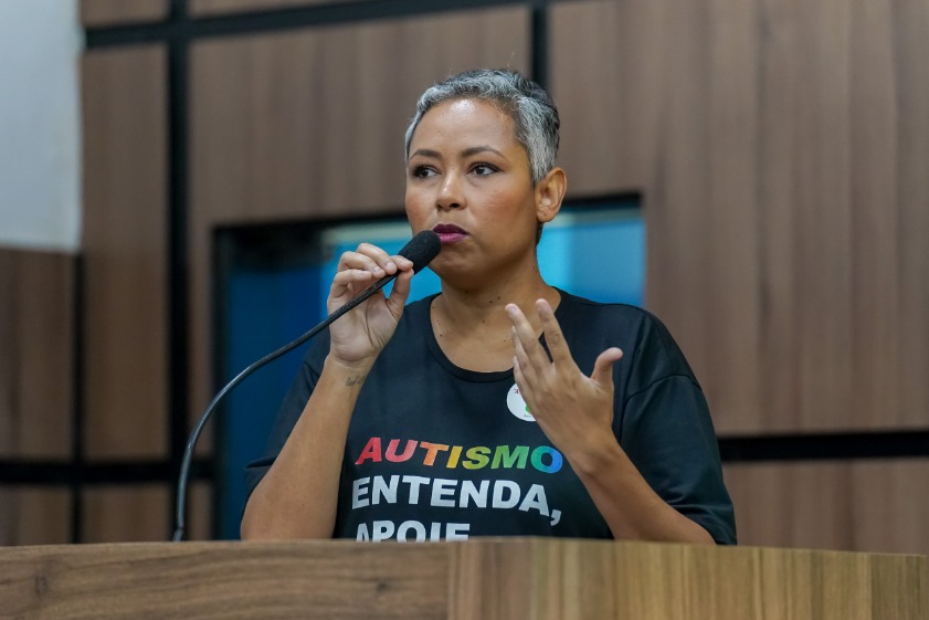 A professora Jossely de Oliveira, ex-presidente da ASPAA, diagnosticada aos 33 anos com o nível 1 de TEA; mãe de dois filhos com o transtorno (um deles com nível 3 de suporte) apresentou um Slide mostrando, a partir de estudos científicos, características comuns do comportamento dos autistas e dados estatísticos de casos no Brasil e no mundo. “Se pudesse resumir autismo, diria: configuração cerebral diferente. O cérebro neurodiverso pensa diferente do cérebro neurodivergente. É uma minoria da população, mas ela existe. A configuração do nosso cérebro é atípica. ”, resumiu, lamentando as barreiras impostas pela forma como a sociedade se organiza e que penaliza, principalmente, a mulher autista. “Cultura machista tende a relativizar aspectos das mulheres autistas que nos homens seriam vistos como problemas. ”, asseverou. Ela aproveitou para cobrar da Secretaria de Saúde melhores condições de atendimento para os autistas e a implantação do Centro Dia de Referência, unidade publica especializada que atende jovens e adultos com deficiência sem autonomia e seus cuidadores. “Senhores gestores, vamos pensar nisso? É urgente! ”, provocou.