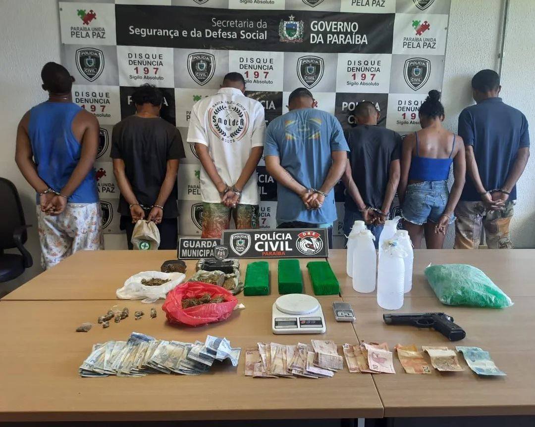 Seis homens e uma mulher foram presos na tarde de ontem suspeitos de atuarem no tráfico de drogas no Centro de João Pessoa. O grupo circulava nas proximidades do prédio dos Correios na Praça Pedro Américo e fingia trabalhar como flanelinhas, mas sua atividade principal, de acordo com a polícia, era a venda de entorpecentes. Com o grupo foram apreendidos 6 quilos de maconha, quatro litros de loló, duas balanças de precisão, uma pistola de brinquedo e dinheiro trocado, característico do tráfico de drogas.