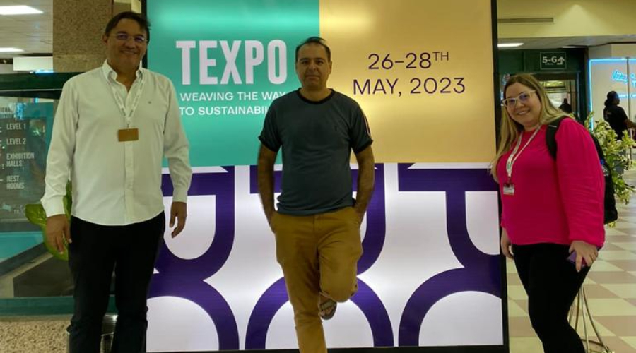 Nilton Costa, da Carreiro com Waqas Alam, Consul Comercial do Paquistão no Brasil; e Rafaela Reinhold, da Altenburg Têxtil (de Blumenau/SC).