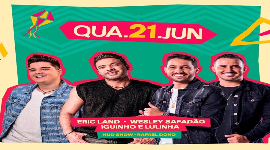 O São João 2023 de Patos, no Sertão da Paraíba, segue acontecendo no Terreiro do Forró, até 23 de junho. Nesta quarta-feira (21) se apresentam Wesley Safadão, Iguinho e Lulinha e Eric Land.