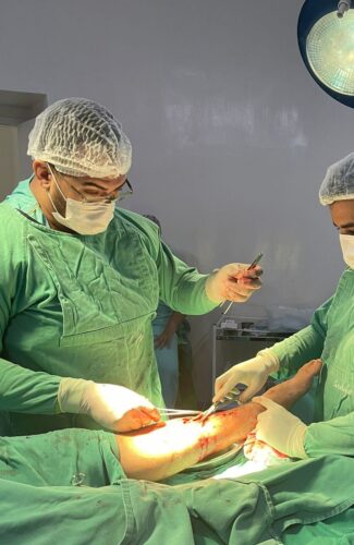 Dos 33 procedimentos cirúrgicos, a maior parte foi de Cirurgias Ortopédicas, com 15 casos, sete de Cirurgias Gerais, cinco Vasculares, duas Oncológicas, duas Buco-Maxilo, uma torácica e uma Urológica.