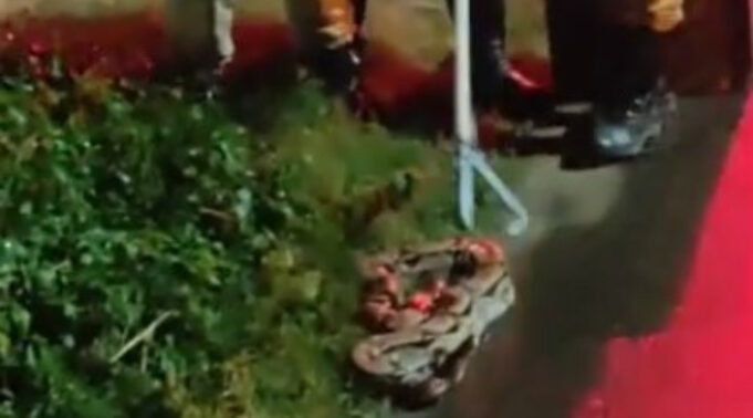 Nas imagens é possível ver o animal enrolado no canteiro da rua e depois já sendo resgatado pelos bombeiros militares. Segundo a equipe que pegou a jiboia, ela foi vista pelos moradores andando na localidade.