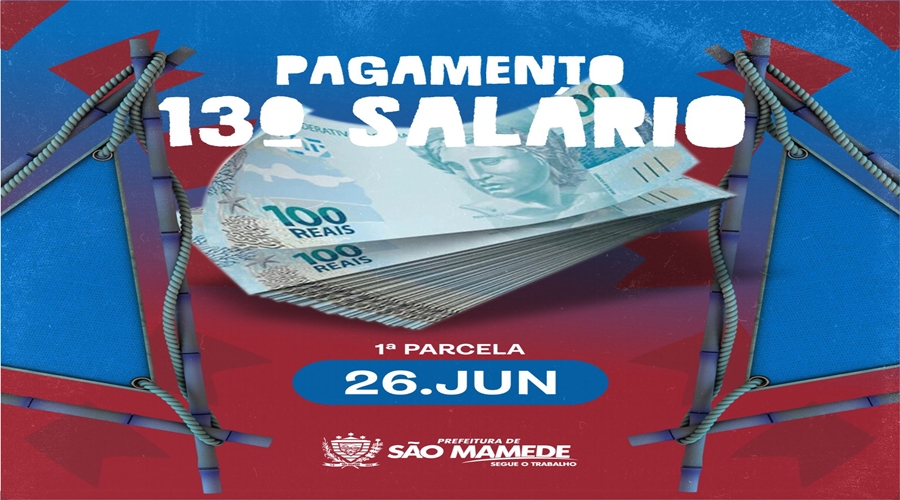 O prefeito de São Mamede, na Região Metropolitana de Patos, Dr. Jefferson, divulgou nesta segunda-feira (26/06), através das redes sociais o pagamento da 1ª parcela do 13° salário aos servidores municipais e o pagamento referente a folha de junho que será creditado nesta terça-feira. O anúncio foi recebido com entusiasmo pelos funcionários públicos, que terão um reforço financeiro para aproveitar os festejos juninos.