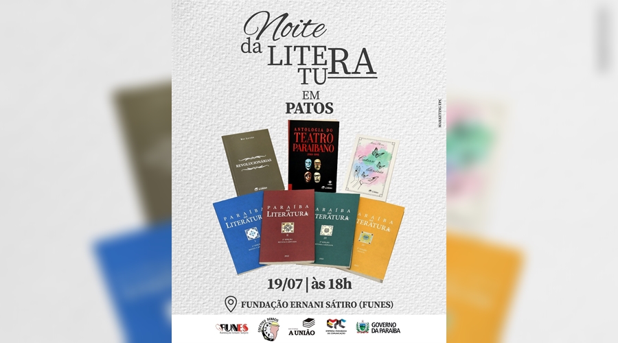A cidade de Patos, no Sertão do Estado, recebe nesta quarta-feira (19), às 18h, na Fundação Ernani Sátiro (Funes), o projeto ‘Noite da Literatura Paraibana’, que vai contar com lançamentos de livros e apresentações culturais. A realização é da Empresa Paraibana de Comunicação (EPC), por meio da Editora A União e Livraria A União, em parceria com o Coletivo Cultural Derréis e a Funes.