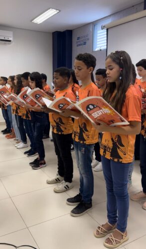 Na manhã desta quarta-feira, 19/07, houve a apresentação do Coral Vozes do Sertão da Escola Municipal de Ensino Fundamental Monsenhor Manoel Vieira, na pessoa da gestora escolar Joana Mércia Vieira Cavalcante, bem como também com conta com o apoio da Secretaria Municipal de Educação de Patos e dos jovens Lucas da Silva Caetano e Emanuel Messias Ferreira.