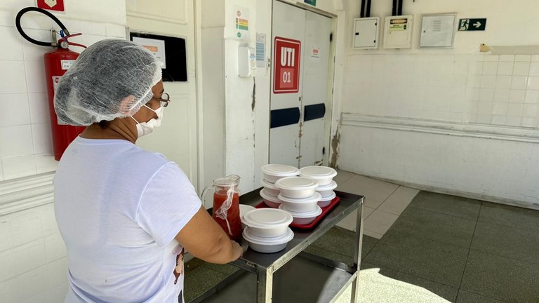 Dinâmica da nutrição – Atualmente, são servidas seis refeições todos os dias para cada um dos pacientes do Complexo, mais 150 refeições/dia para os pacientes do setor de Hemodiálise, de segunda a sábado, que são os dias de realização do serviço. Também são servidas três refeições para acompanhantes. Fora disso, os funcionários plantonistas noturno ainda têm três refeições, assim como os plantonistas diurnos. Os pacientes do Complexo têm o desjejum (7h), a colação (9h), almoço (12h), lanche (15h), jantar (18h) e ceia (21h). Funcionários têm cinco refeições/dia: desjejum (8h às 9h), almoço (11h às 12h30), lanche (15h às 16h), jantar (20h às 21h) e ceia (23 às 24h). Os acompanhantes têm o desjejum às 7h, o almoço de 12h30 às 13h e o jantar das 19h às 20h.