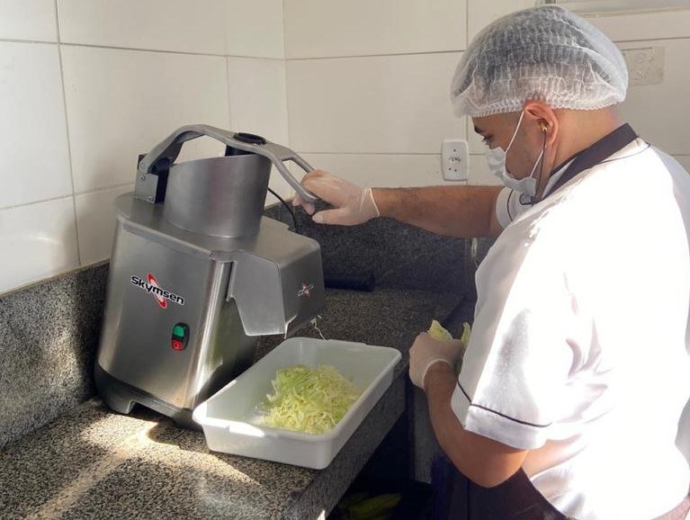 Ele disse ainda que, com os novos equipamentos, o preparo de saladas, frutas, verduras se tornou muito mais célere, se ganhando não apenas no tempo de preparo, mas também em qualidade de produção, o que dá um ganho significativo para a unidade que produz 1600 refeições/dia. Thiago também destaca que essas melhorias resultam em mais qualidade na produção de refeições, segurança alimentar e também economia ao serviço como um todo.