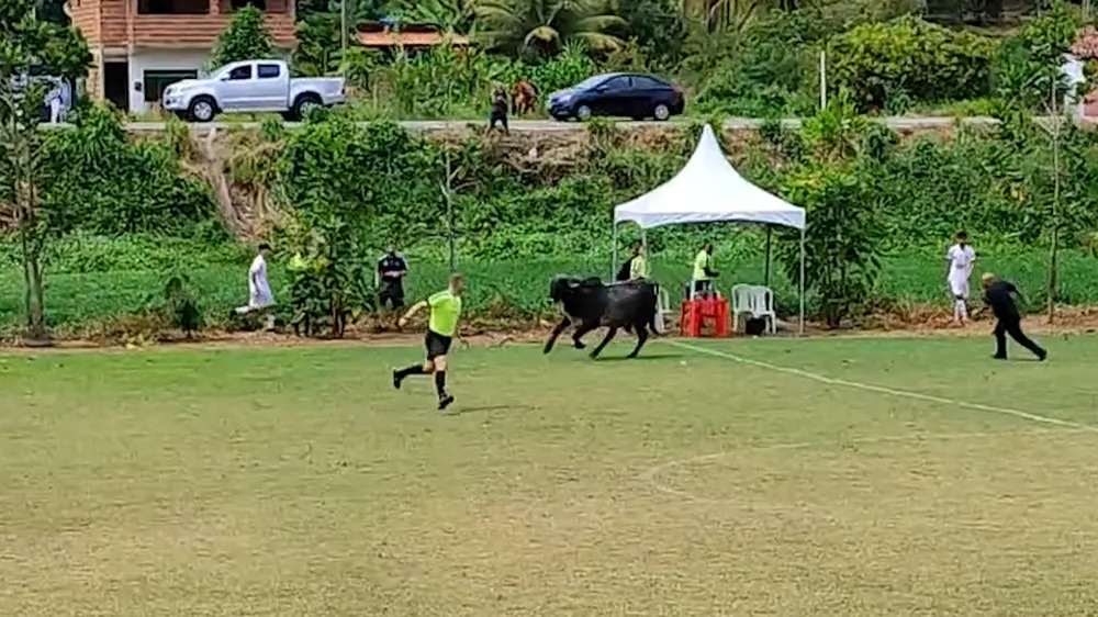 Além disso, vários torcedores estavam ao redor do campo no momento em que o touro inesperadamente invadiu o gramado. Atletas, integrantes das comissões técnicas, árbitros… todos correram em direções aleatórias, tentando escapar do invasor inesperado. Torcedores e pais dos jogadores também fugiram do animal. Menos mal que o momento, de plena tensão, não teve feridos.