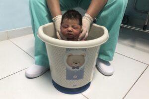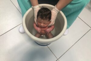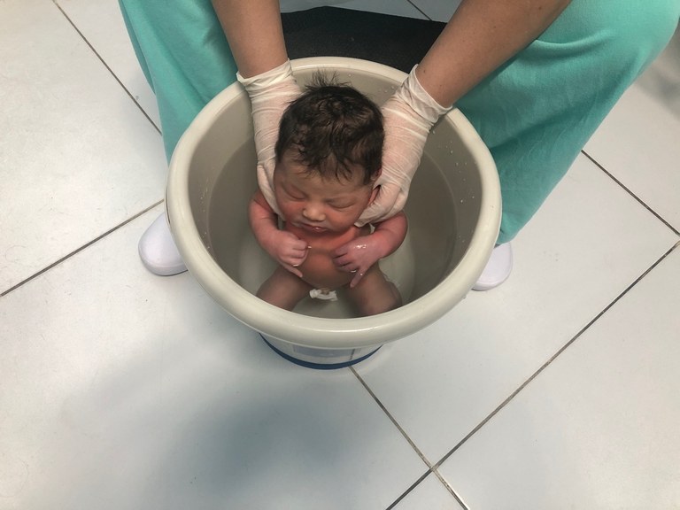Segundo a enfermeira Jaine Galdino, também conhecido como banho de balde, esse momento traz diversos benefícios, como alívio de cólicas e gases, diminuição do cortisol devido ao relaxamento muscular, dentre outros, com isso, facilitando o sono. “Ao relaxar os músculos, isso pode minimizar o estresse do parto e a adaptação ao mundo extrauterino”, destaca.