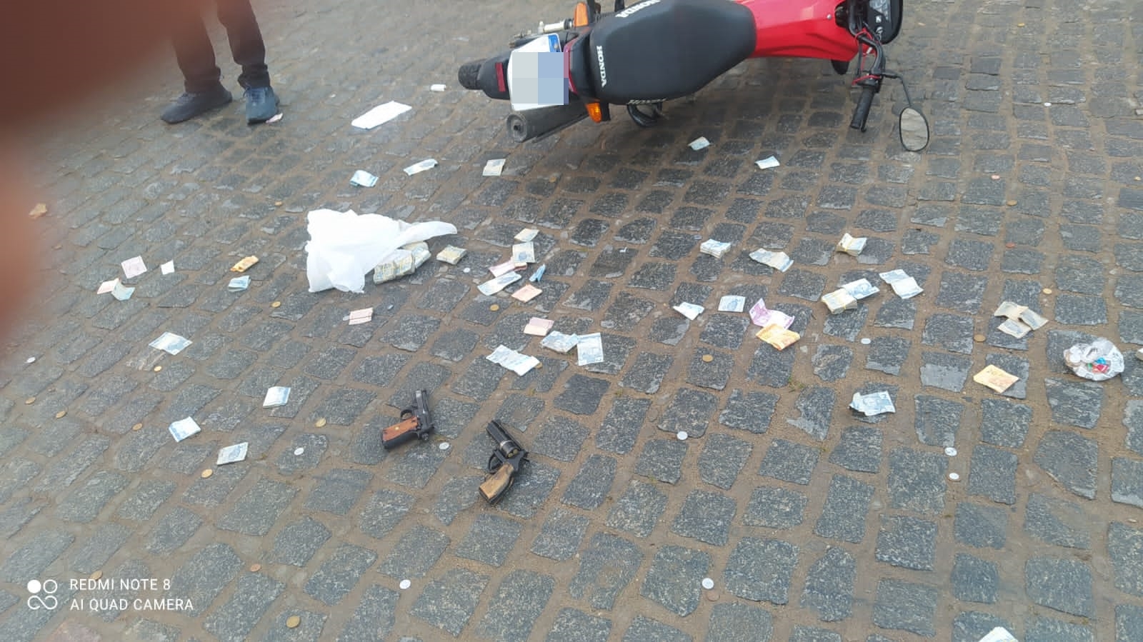 Com os presos foram apreendidas cinco armas de fogo, munições, toucas ninjas, dinheiro provenientes dos roubos, celulares, além de um carro e duas motos também fruto de roubos.