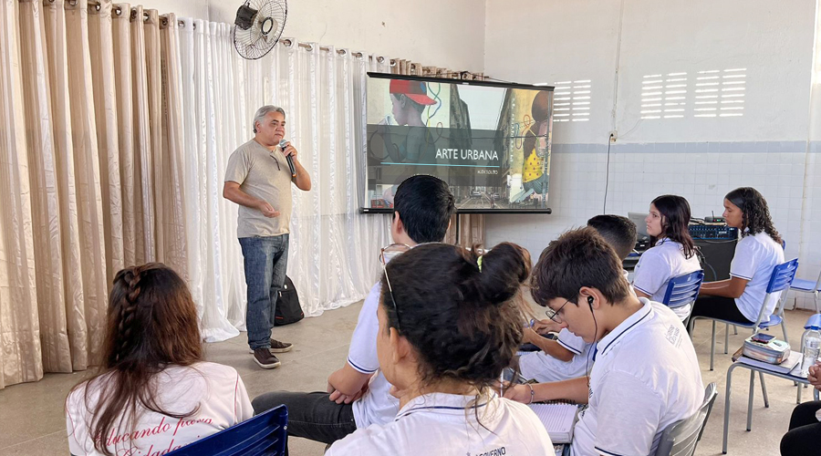 O artista visual e designer Alex Souto vem realizando uma série de visitas e conversas nas escolas com o tema da arte urbana na cidade de Patos.