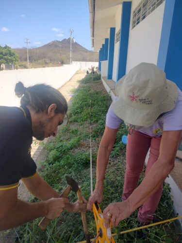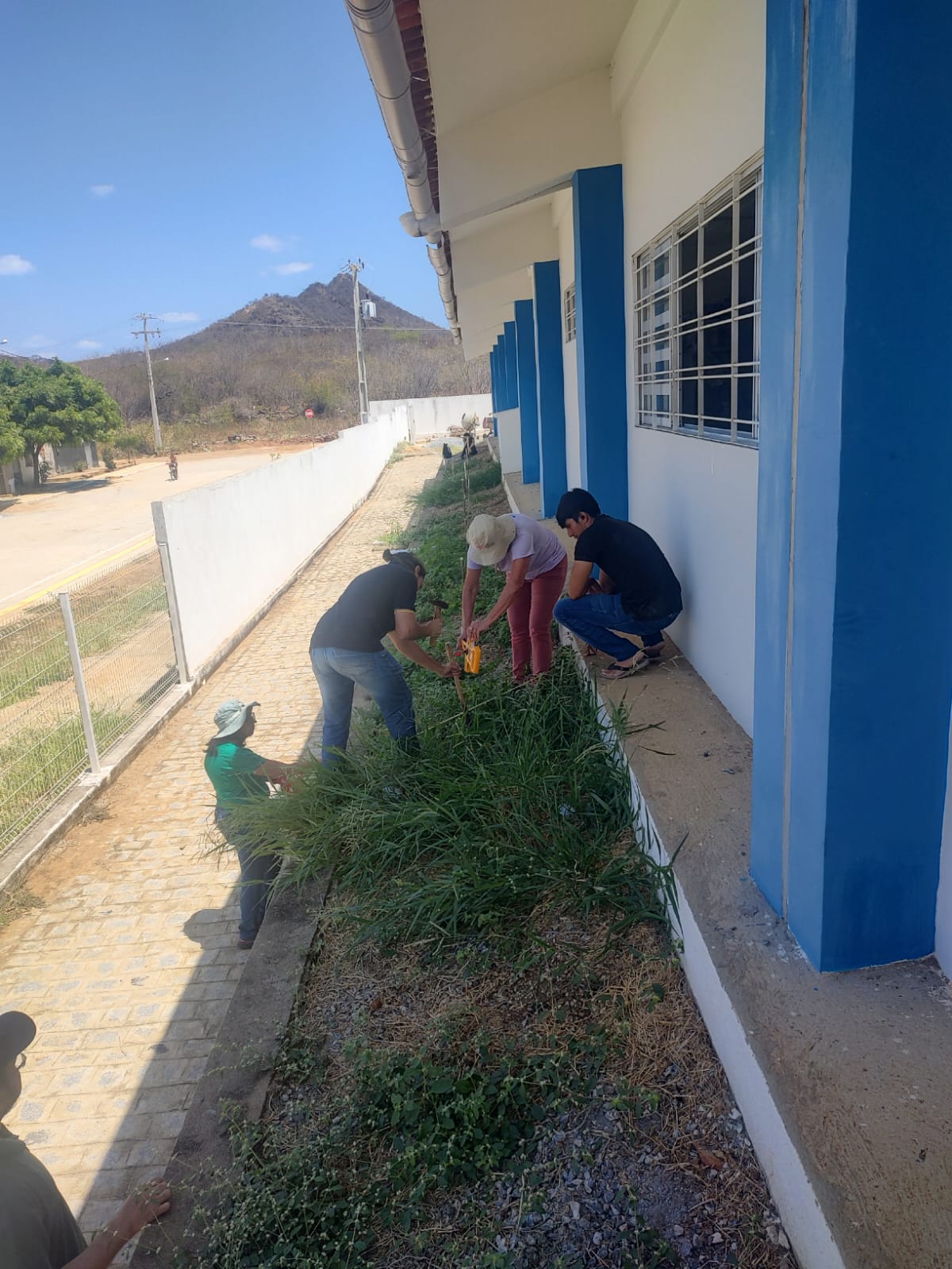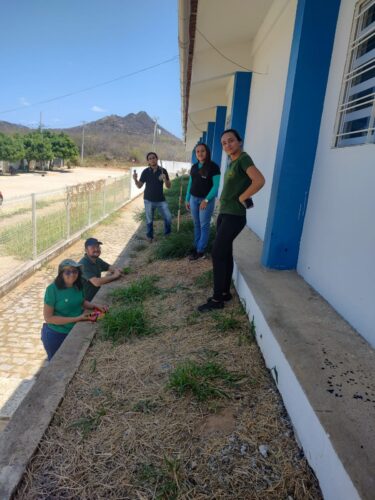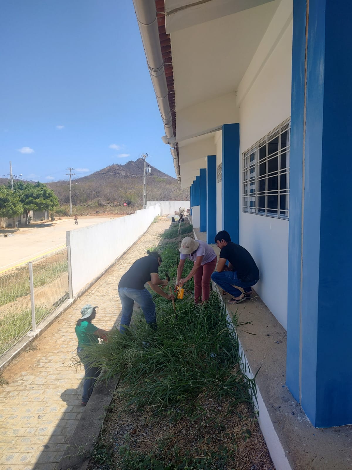 Desta feita, ocorreu a visita da professora Maria do Carmo, do curso de Engenharia Ambiental da UFCG, juntamente com os estudantes desta universidade, com a finalidade de realizar a piquetagem do entorno escolar a fim de realizar o plantio posterior.