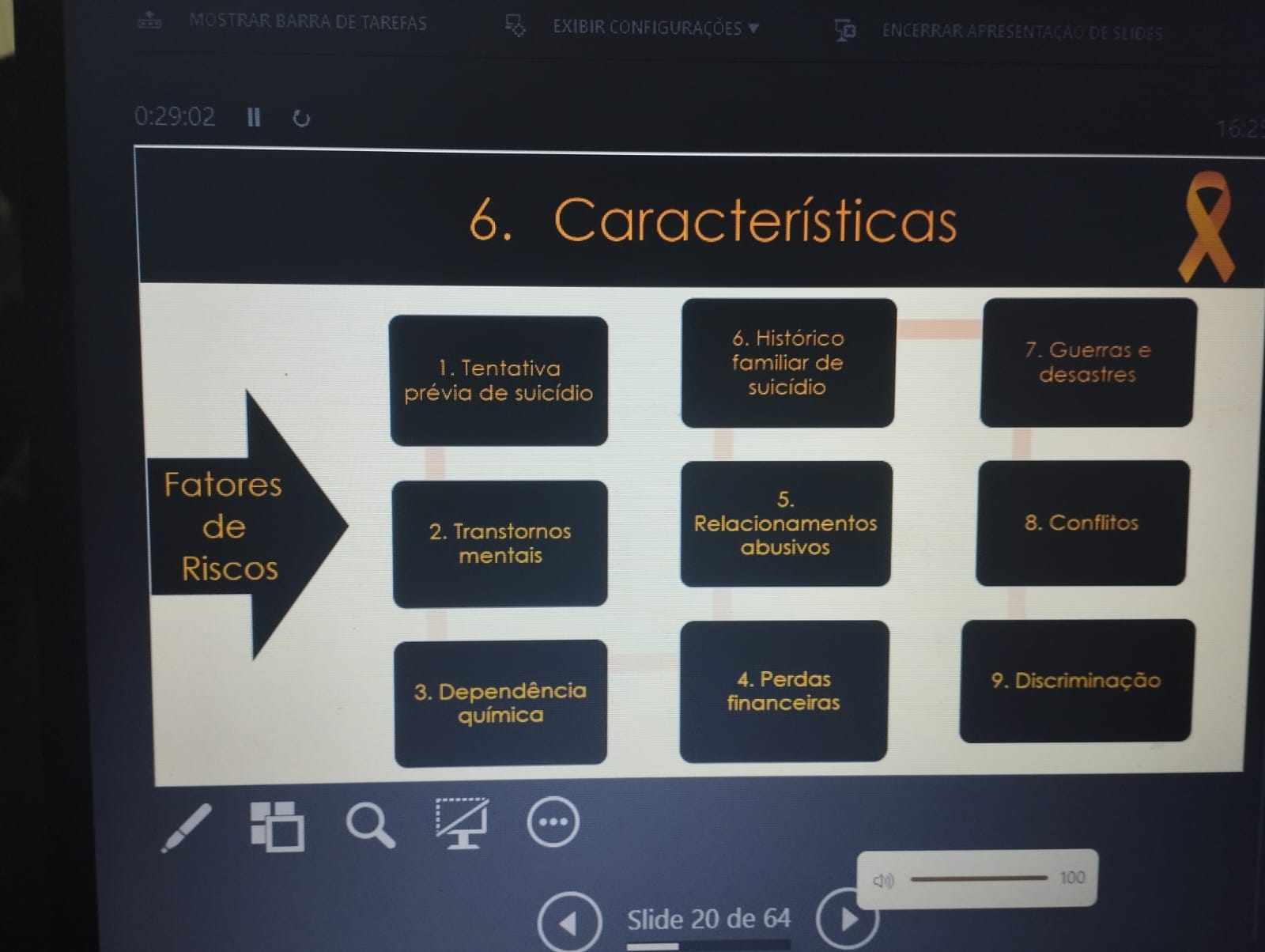 Além disso, à luz da Logoterapia e análise existencial apresentou algumas intervenções que podem nos ajudar a enfrentar essa realidade. Foi enfocado a necessidade se diminuir fatores de risco e aumentar os fatores de proteção. Pois o ser humano tem um potencial de liberdade interior para enfrentar os condicionamentos da vida. Ninguém é patologia.