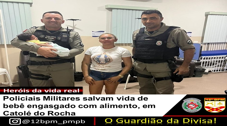 Na noite desta quarta-feira (27) policiais militares do 12º BPM salvaram a vida de um bebê do sexo masculino de apenas um mês de idade que havia se engasgado com alimento, em Catolé do Rocha, sertão da Paraíba.
