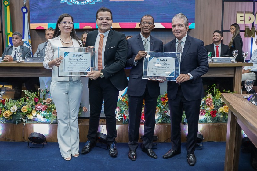 Durante sessão solene realizada na tarde desta quinta-feira (28.09), a Câmara Municipal de Patos homenageou duas magistradas lotadas na Comarca de Patos e seis desembargadores do TJPB – Tribunal de Justiça da Paraíba, concedendo-lhes Voto de Aplauso e cidadania patoense, por relevantes serviços prestados à sociedade.