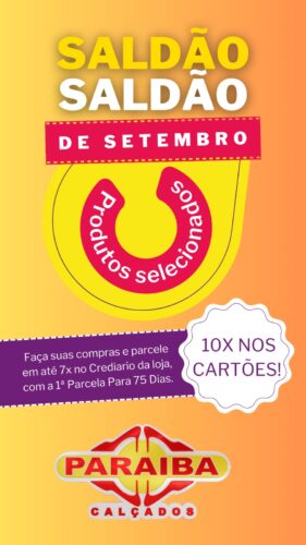 A Paraíba Calçados, localizada na Rua Pedro Firmino, no Centro, realizou grandes promoções durante o mês de setembro, período em que é comemorado a Festa de Nossa Senhora da Guia, padroeira de Patos.