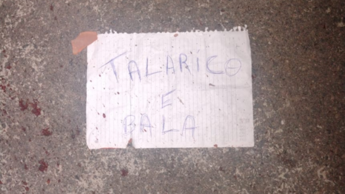A Polícia Militar foi acionada na noite de terça (3) sobre um homicídio que teria ocorrido no bairro de Mandacaru e, ao chegar no local, o corpo de um homem foi localizado e já estava sem vida. Segundo a Polícia, ao lado do corpo foi encontrado um bilhete escrito à mão, com a mensagem “Talarico é bala”, que teria relação com a morte do homem.