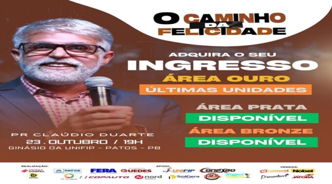 Aos interessados em participar, é crucial agir rapidamente. Os organizadores acreditam que os ingressos remanescentes serão vendidos em breve, dada a demanda contínua. Para a aquisição de ingressos ou mais informações, acesse https://ticketgospel.com.br/eventos/pr-claudio-duarte-o-caminho-da-felicidade-em-patos-pb/