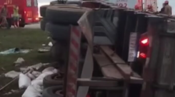 Segundo informações do Corpo de Bombeiros, o motorista do caminhão, que vinha de Maceió e seguia para o Rio Grande do Norte, perdeu o controle e o veículo capotou.
