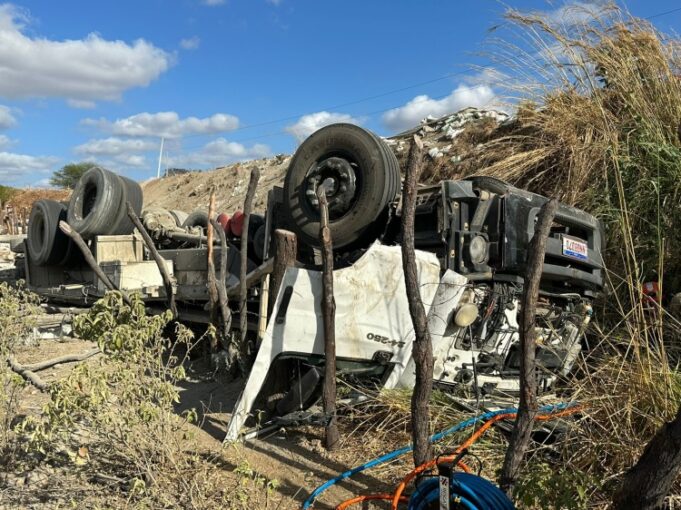 Um caminhão carregado com argamassa, capotou no início da manhã desta quarta-feira (11), na rodovia estadual que dá acesso a Catolé do Rocha, em um local conhecido como “Curva da Maniçoba”, no município de Pombal, Sertão paraibano.