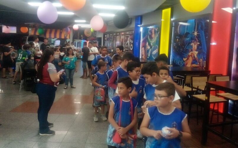Na tarde desta segunda-feira, dia 16 de outubro, mais de 40 crianças e adolescentes atendidos pela Pastoral do Menor da Paróquia Nossa Senhora das Neves, no Conjunto Bivar Olinto, em Patos, participaram de uma sessão de cinema no Guedes Shopping.