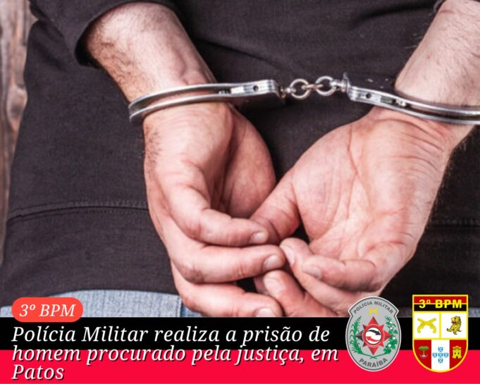 Policiais militares do 3º BPM realizaram, na manhã desta quarta-feira, (18), a prisão de um homem de 23 anos que estava sendo procurado pela justiça. A prisão foi realizada no bairro Jardim Europa, em Patos.