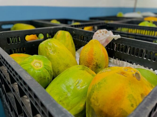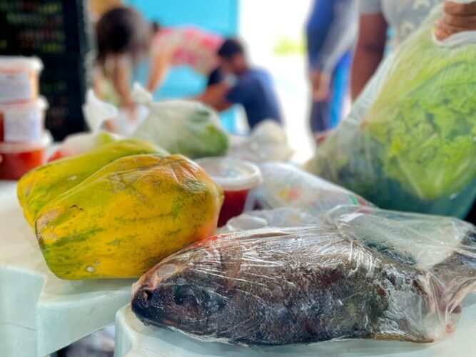 Os kits de alimentos adquiridos diretamente de agricultores familiares, foram compostos por: carne bovina ou peixe, polpa de frutas, doce, tomate, batata doce, hortaliças e mamão, além de doações complementares como: tomate cereja, manga espada, brócolis e melancia.
