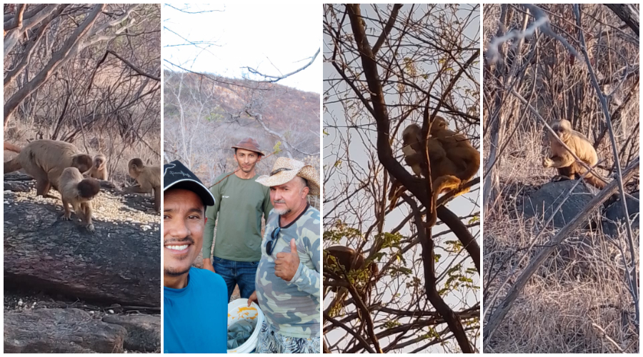 Os animais descem a serra e ficam no Sítio Alto do Desterro, onde o popular Francisco das Chagas Gomes Xavier, conhecido por Chaguinha, leva água e comida todos os dias. “Neste ano, a quantidade de macacos aumentou bastante. Estamos alimentado eles há três dias”, disse.