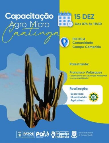 A Prefeitura de Patos, por meio da Secretaria de Agricultura, e em parceria com o Programa de Educação Tutorial – PET, do curso de Engenharia Florestal da UFCG, realiza, no próximo dia 15 a primeira Capacitação AgroMicroCaatinga.