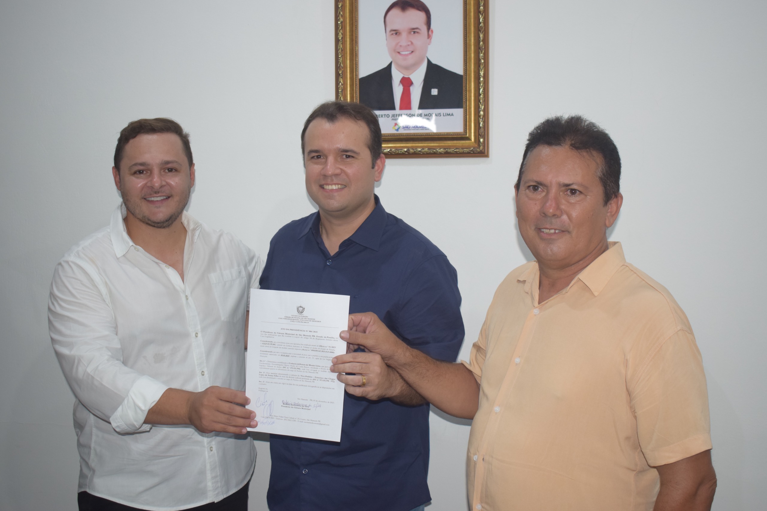 Acompanhado da primeira dama, Micaela Motta, do vice-prefeito Chaguinha Lopes, do presidente da câmara Berlanio Borburema, vereadores, secretários, diretores e população, além dos ex-prefeitos Dr. Chagas Lopes e Dr. Umberto Marinho.
