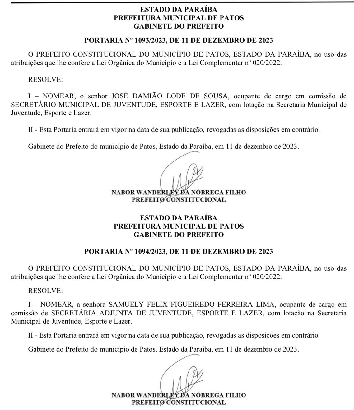 Conforme antecipou o jornalista Vicente Conserva, o prefeito de Patos, Nabor Wanderley, confirmou nesta terça-feira (12), indicações do seu mais novo aliado Cicinho Lima, suplente de deputado, para ocupar a pasta da Secretaria da Juventude, Esporte e Lazer nesta terça-feira (12).
