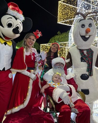 Famílias e amigos se reuniram na praça central, iluminada com a magia do Natal. O Papai Noel, acompanhado de sua animada bandinha, distribuiu sorrisos, enquanto pipoca, sorvete e algodão doce contribuíram para uma atmosfera festiva e alegre.